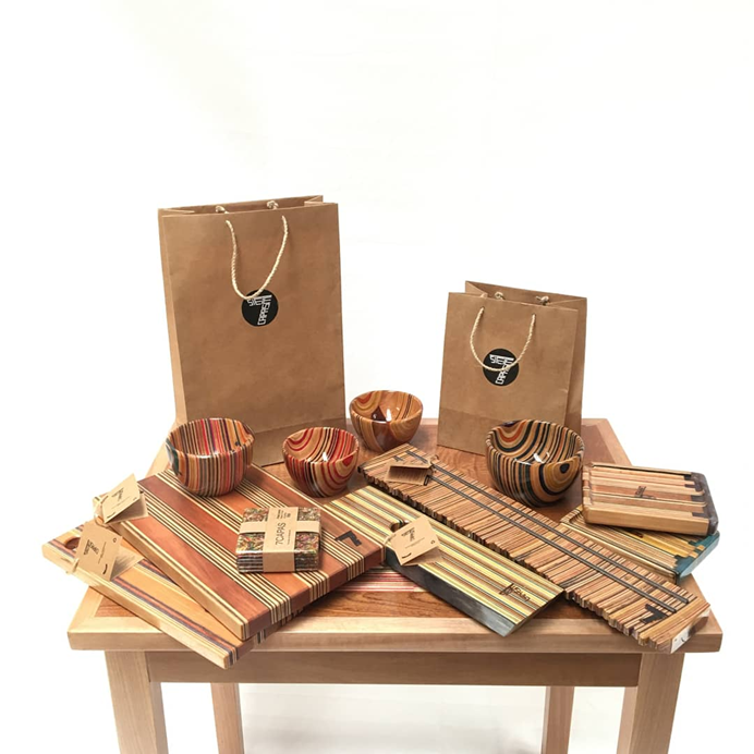 Foto N°3: Algunos de los productos fabricados por 7Capas en base a reutilización de tablas de skate.