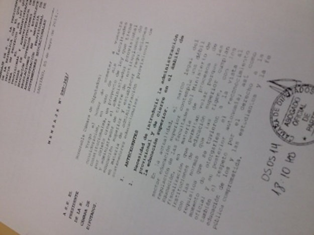 f. Que este proyecto recoge lo señalado por las comisiones investigadoras sobre la educación superior que terminaron a fines del año 2013, como, asimismo, ha sido sugerida la creación de esta figura por el Consejo Nacional de Educación y el Instituto Nacional de Derechos Humanos.