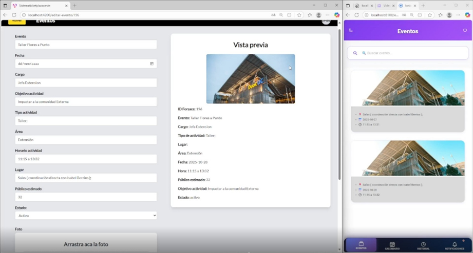 Imagen N°1: Interfaz sistema agendamiento de eventos “Vives Oeste”.