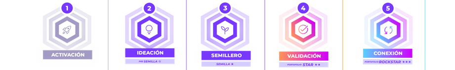 Además, está estructurada en cinco niveles que guían el avance del estudiante según la madurez de su idea: