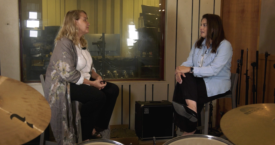 Foto N°1: Clara Silva Pérez, directora de la carrera de Ingeniería en Sonido y Tecnología en Sonido e Iluminación de la sede San Carlos de Apoquindo, junto a Dominique Bignon Silva, jefa de Comunicaciones de la Sede.