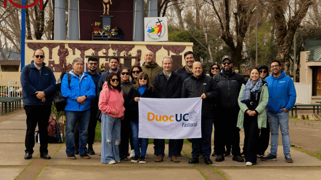En la sede San Andrés de Duoc UC, nos propusimos entonces peregrinar al santuario de Yumbel, que todos sabemos es el santuario no mariano más concurrido del país. Porque en realidad, para las grandes fiestas, que son en nuestro país las grandes fiestas marianas, por ejemplo, el 8 de diciembre en Lo Vásquez o la fiesta de La Tirana, el 16 de julio, acuden cientos de miles de peregrinos. Quizás muchos de nosotros hemos podido participar también en esas peregrinaciones. Pero el segundo santuario más visitado que no esté dedicado a la Virgen María es el santuario de Yumbel. Santuario dedicado a este gran mártir de la fe: San Sebastián. Y nosotros en la sede San Andrés de Concepción, nos propusimos poder peregrinar hasta el santuario de Yumbel, para ahí encontrarnos con esta gracia de la indulgencia plenaria.