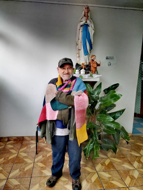 Foto N°3: Frazada para personas en situación de calle confeccionada por el Club “Tejijuntas”, entregado en las Misiones solidarias de invierno 2025, en Rancagua.